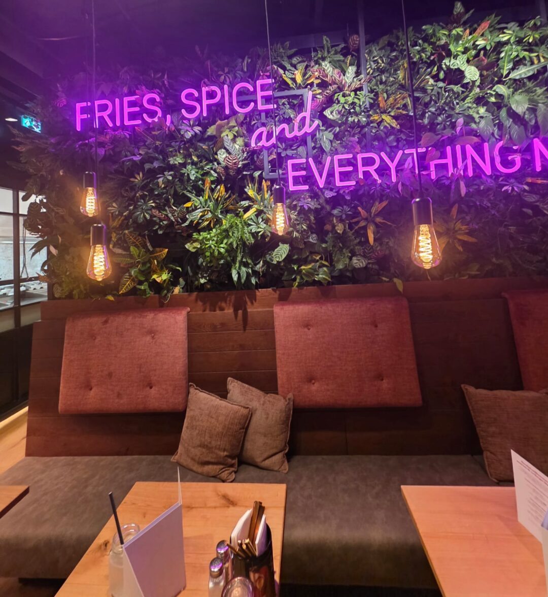 Schon beeindruckend, die Showküche mit einem 7 Meter hohen Glaskubus und einem raffinierten Lichtdesign! Hier werden individuelle Burger Highlights wie der Classic Bacon Cheese Burger, der Classic Cicken Burger, der Vegane Cheese Burger oder saisonale Besonderheiten wie aktuell Don Ganso Burger, Steaks vom Salzburger Alpenrind oder Bowls frisch zubereitet. In der Winterkarte findet sich auch ein „Rudolf“, der Pulled Hirsch mit Mustard Mayo, Knödelchip, Preiselbeeren, Röstzwiebeln, mariniertem Rotkraut und Tomaten-Nase. Hauseigen Softdrinks, Cocktails & more ergänzen das Angebot.