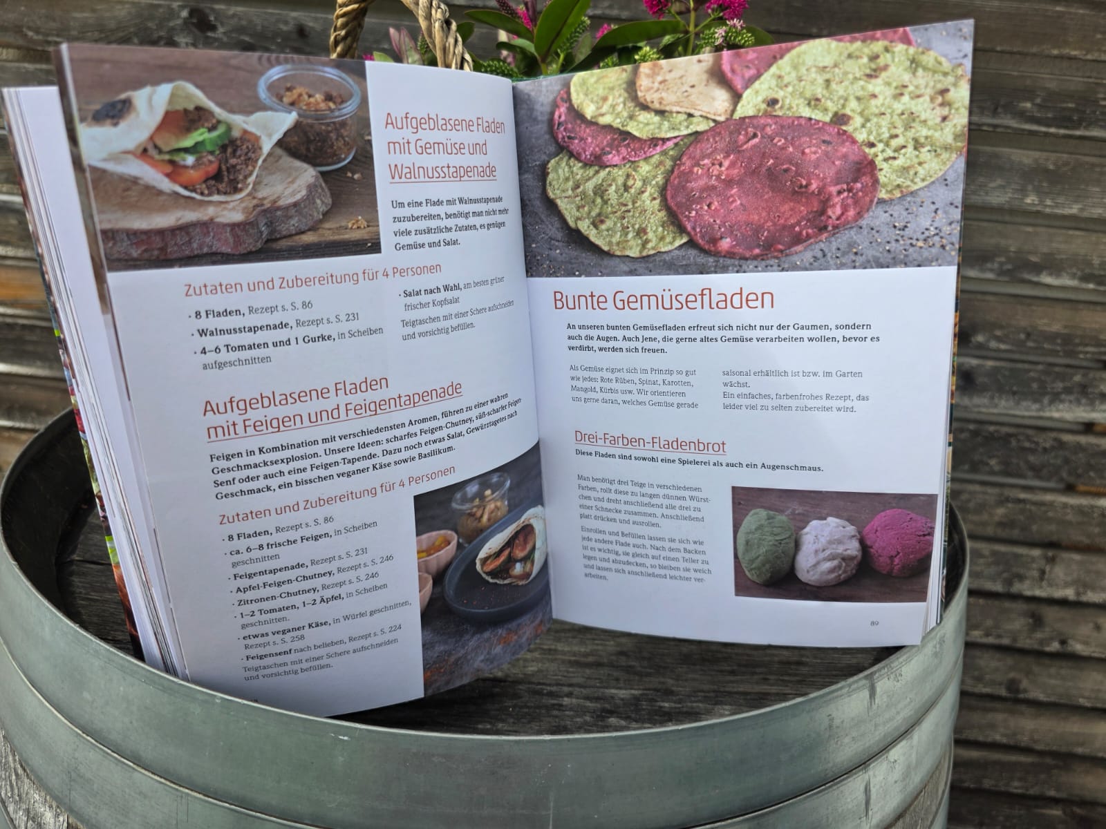 Ich konnte gar nicht aufhören zu blättern! Das neue Buch „fladen“ von Rudolf Kallinger und Marlene Schmoranzer lädt zu einer bildreichen kulinarischen Reise rund um die Welt und liefert vegane Rezepte und Inspirationen ganz nach meinem Geschmack! Was es da alles gibt: Tortillas, Gyros, Naan-brot, Döner, weniger bekannte einheimische Balassn und Feuerflecken und ganz viele neue Fladenkreationen!