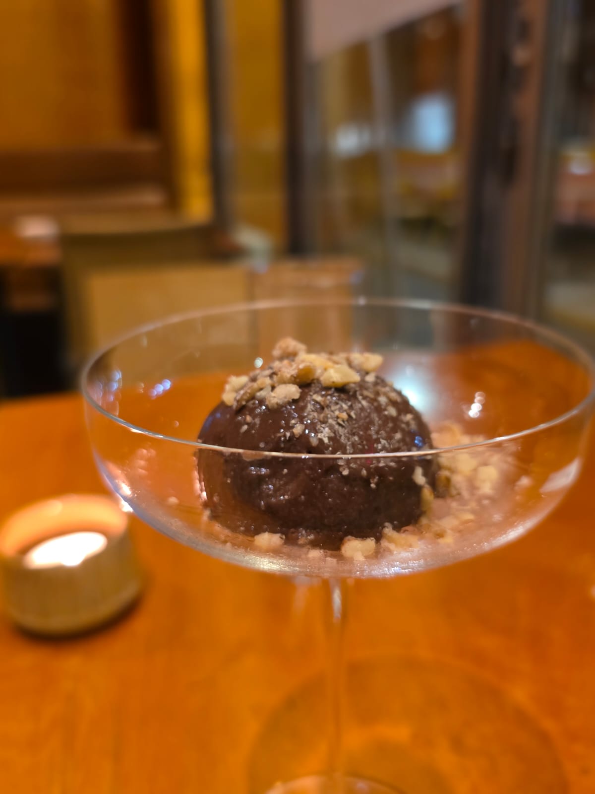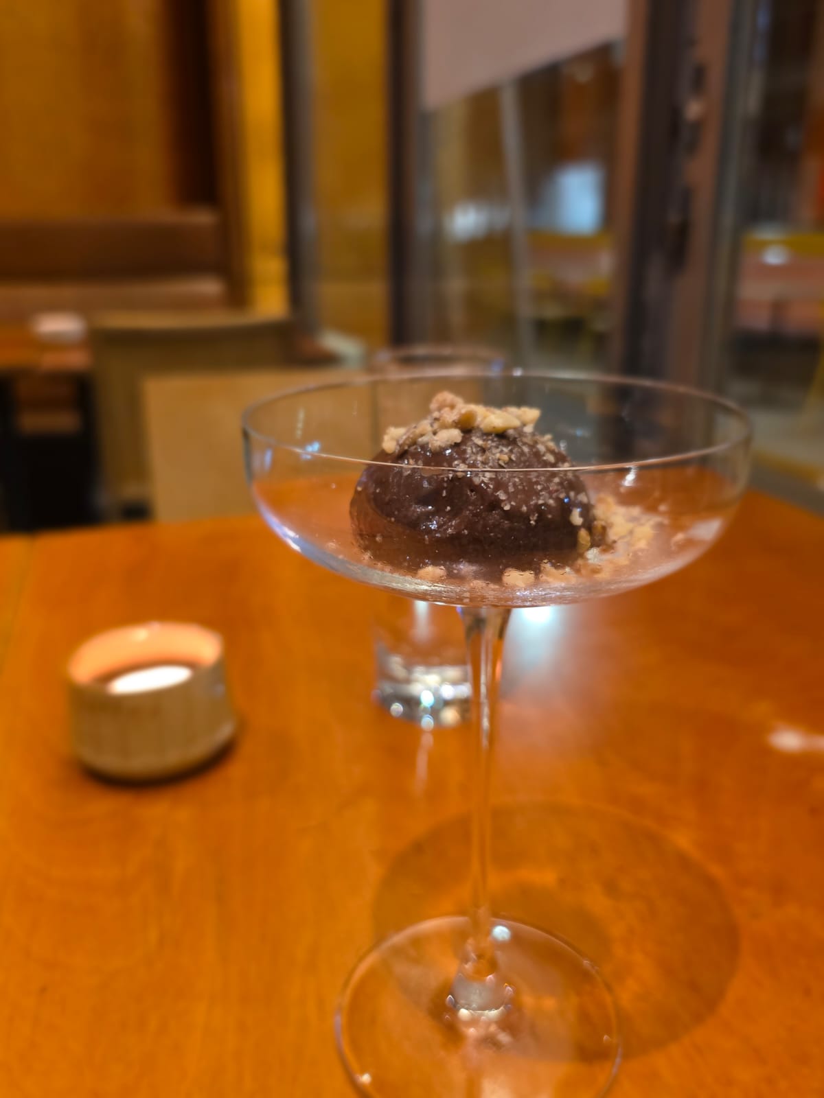 Auch das Dessert war alles andere als gewöhnlich: Das Miso-Schokoladen-Eis war genau nach meinem Geschmack! Ein Spiel von süßen und salzigen Komponenten, äußerst cremig und sogar mit leichtem Umami-Geschmack! Ein Wagnis, das sich gelohnt hat!