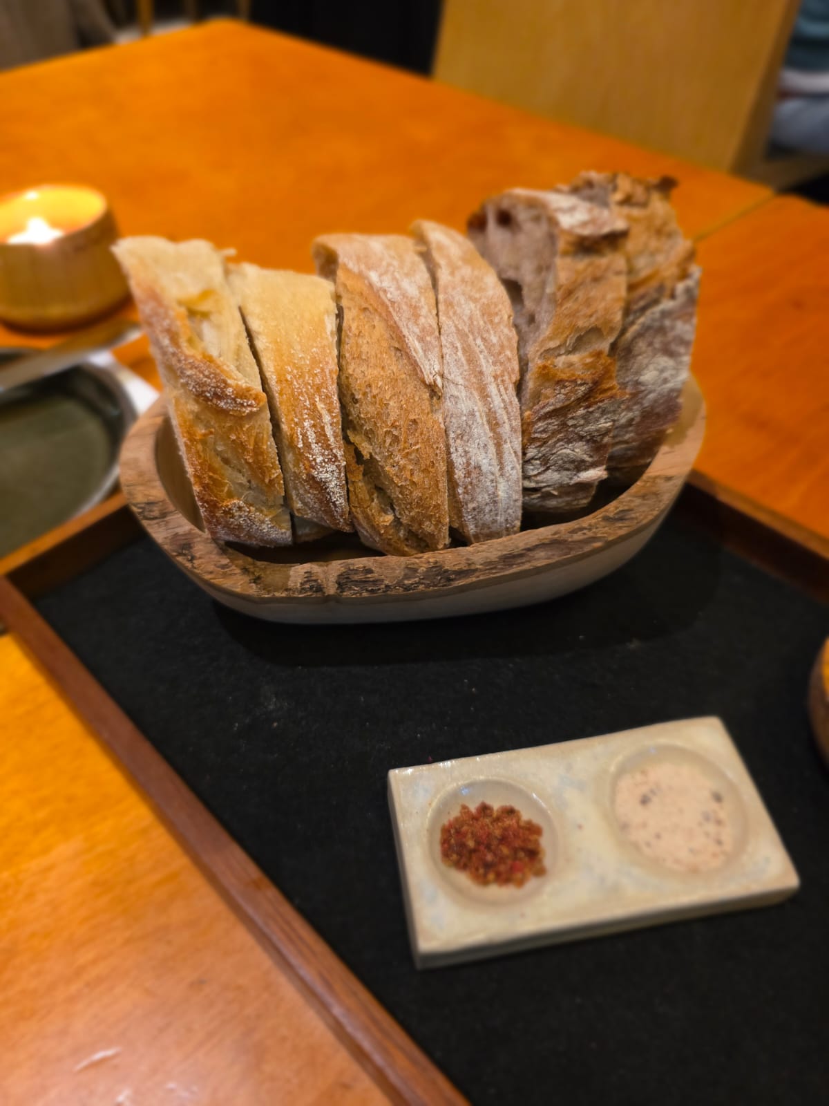 Zum Gedeck kam 3-erlei vom Öfferlbrot im Holzkörbchen auf den Tisch mit Teelicht – dazu Kimchi Salz und rosa Pfeffer plus aufgeschlagene Steinpilzbutter. Ein genialer Einstieg! Mich als Weinviertlerin freut auch immer der Bezug zur Heimat: Familie Öfferl bäckt ja in der Biobäckerei in Gaubitsch und hat sich mit dem Biobrot aus Natursauerteig bereits einen richtig guten Namen gemacht.